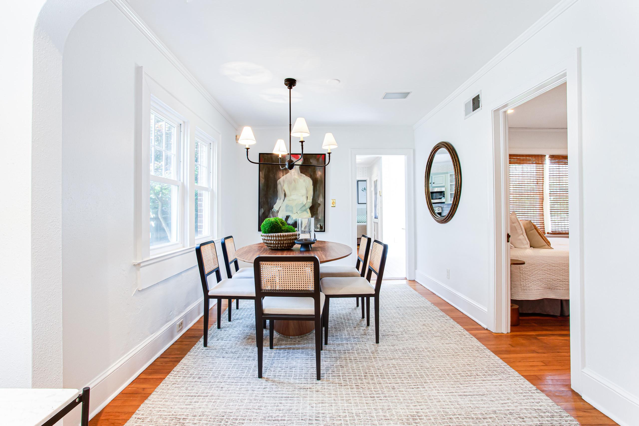 The dining room provides an inviting space for meals, whether you’re cooking your own feast in the well-equipped kitchen or ordering in from one of the nearby restaurants.